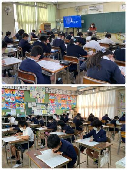 今日は、国語・社会・質問紙の予定です。