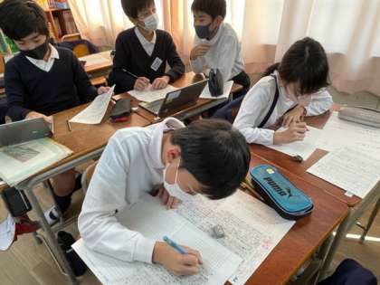 友だちと相談しながら、思い出を振り返ったり、また未来のことを語り合ったりしながら手を進めています。