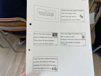 クリスマスシーズンということで、クリスマスソングを歌ったり、クリスマスに関係するお話を読んだりしました。