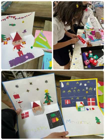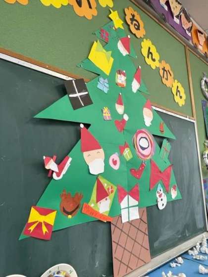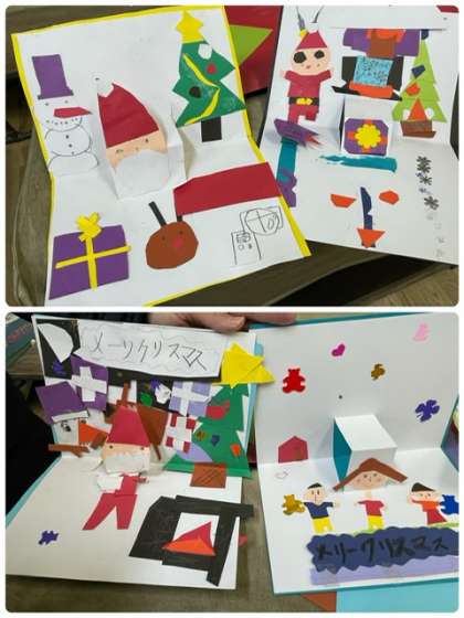 一生懸命、クリスマスカードやツリーの飾りを作りました。