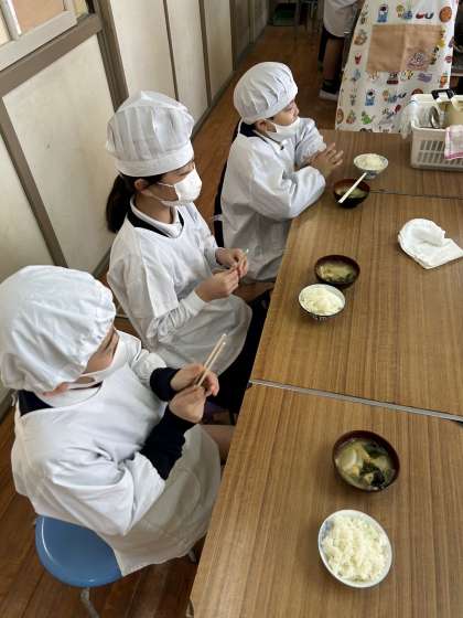 自分たちでつくったごはんとみそ汁の味はどうかな??