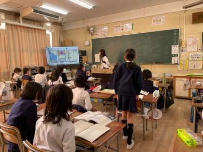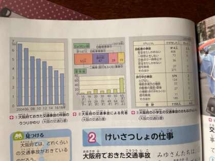 大阪府の小学生の交通事故の原因調べの表を見て、気づいたことを発表しました。