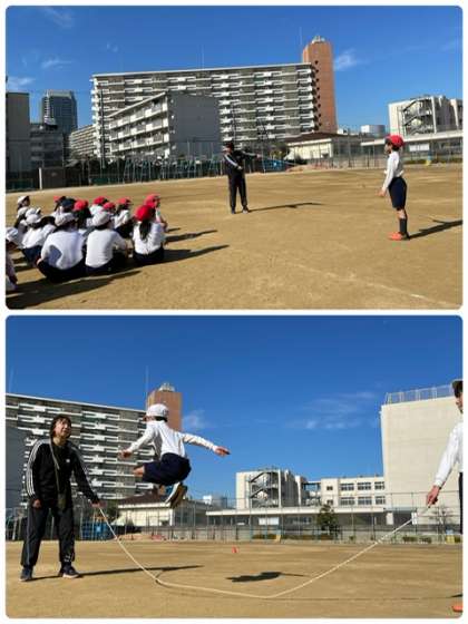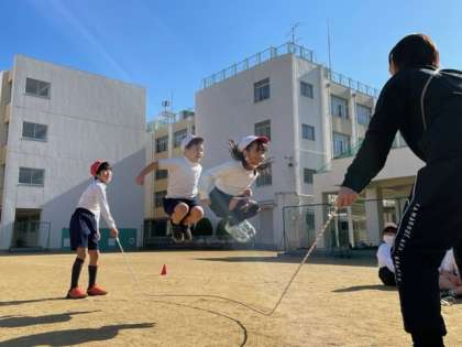 ダブルダッチ用の縄を使い、飛ぶ練習をしました。