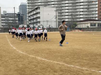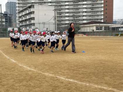 同じペースで走ることができるように、先生が先頭でペースメーカーをして走りました。