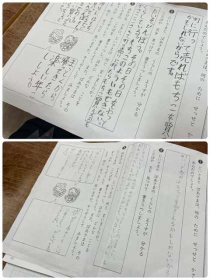 教科書を読み、じいさまとばあさまの生活の様子について考えました。