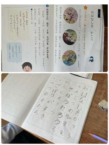 登場人物の名前を考えたり、その人物の特ちょうを考えたりと自分たちで考えることができました。
