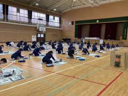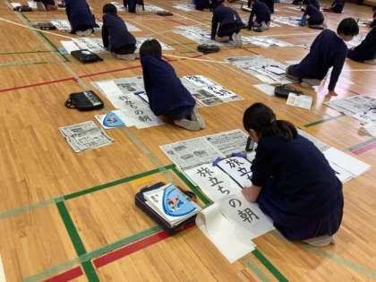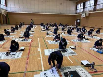 6年生は、講堂に集まって書き初めをしました。1人1人気持ちを集中させて取り組んでいました。どんな「旅立ちの朝」ができあがるでしょうか?