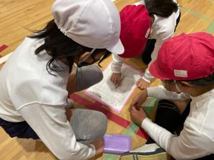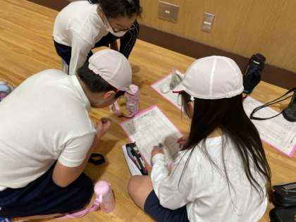 学習カードを使い、チームの練習の進め具合を確認しています。