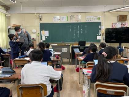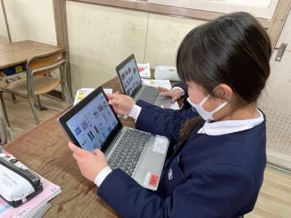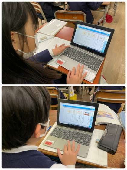 パソコンの学習ソフト「発表ノート」を使い、学習に取り組みました。