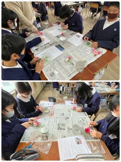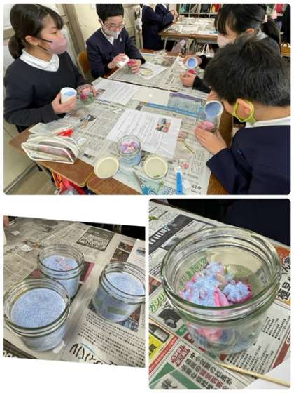 6年生は、「ボトルフラワー」作りです。