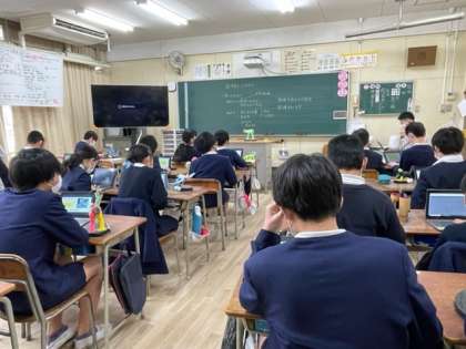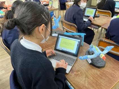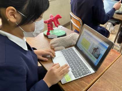 パソコンの中に、作品の写真や振り返りを書き込み、みんなで共有しています。