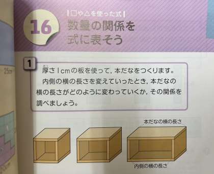 本棚の横の長さと、内側の長さの関係を式に表しました。
