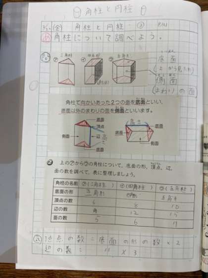 角柱について調べ、分かったことをたくさん発表しました。