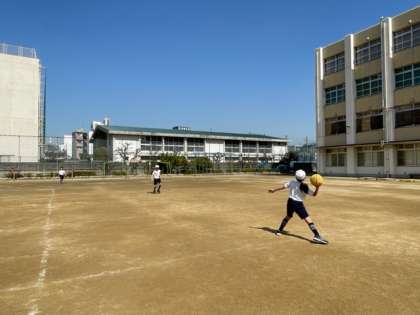 運動場をひろ〜く使い、ボール運動です。