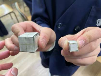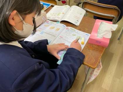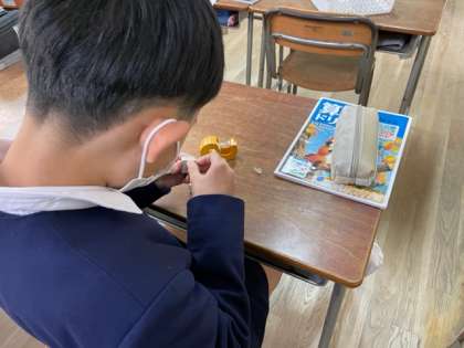 算数ドリルをしたり、ドリルが終わったお子さんは立方体を作ったりしました。