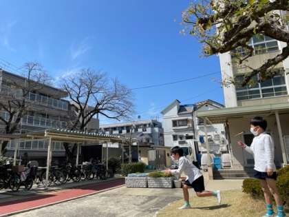 気持ちよく晴れたお天気のもと、昔遊びを気持ちよくしていました。