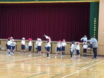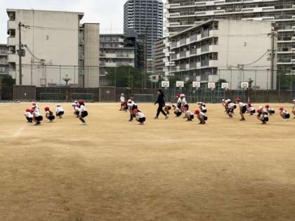 体育科の学習です。少し肌寒い日ですが、しっかり体を動かしていました。
