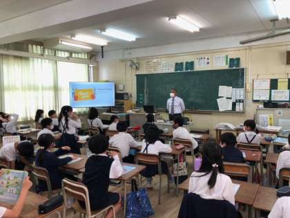 外国語活動 「Hello world」ALTと一緒に楽しく学習しました。