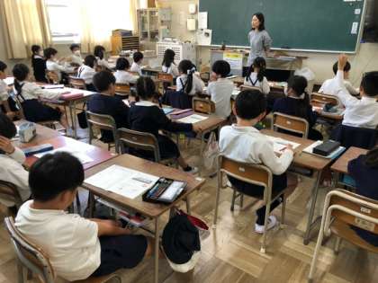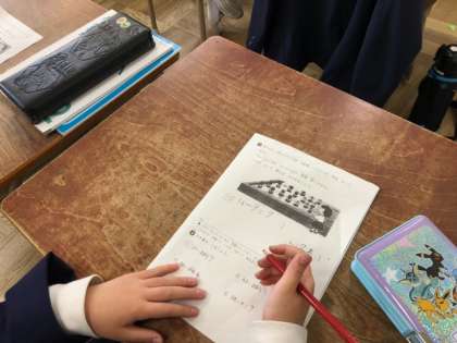 先生の答えを聞きながら、プリントのまるつけをしていました。