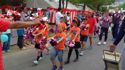 当日は、雲一つない秋晴れの下、子ども達がパレードで元気に踊りました。