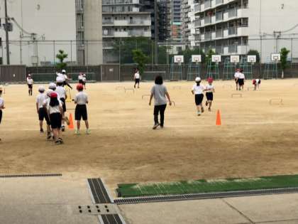 体育科 ハードル走の練習をしていました。
