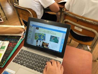 社会科 パソコンを使って、課題を共有していました。操作にも慣れていて、感心しました。