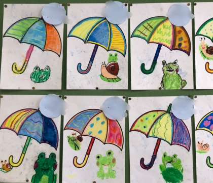 図画工作科 色あざやかで、かわいい作品です。梅雨もはやく明けるといいですね。