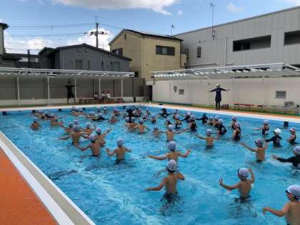 待ちに待った水泳の学習です。少し冷たいけれど、気持ちよさそうに泳いでいました。