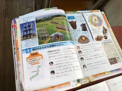 縄文時代の導入です。資料集をもとに当時のくらしを話し合っていました。