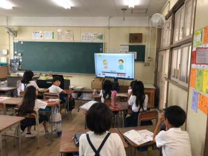 外国語活動 歌に合わせて、楽しみながら学んでいます。