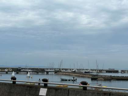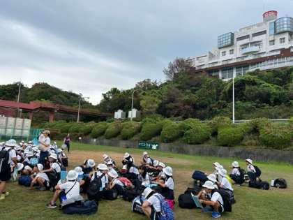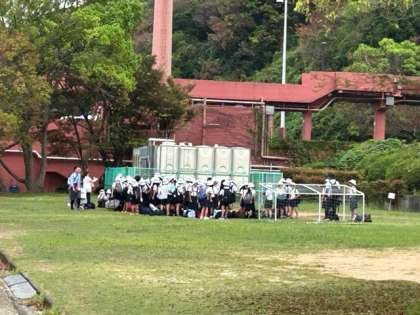 現地は、曇りです。広場で健康チェックをしながら、待機中です。