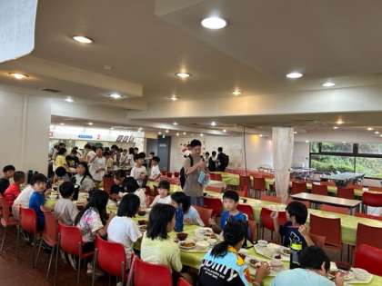 お風呂に入って、夕食の時間になりました。みんなで揃って、いただきます。