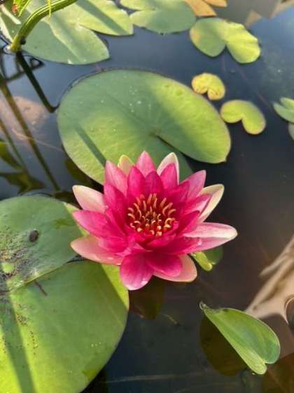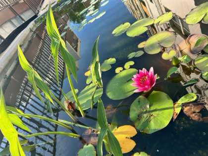 六月ごろ、一株ほどいただいてプール前の池に植えていただきました。