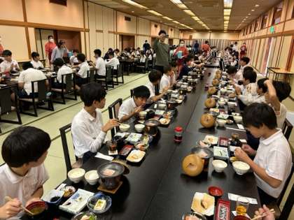 朝食が始まりました。しっかり食べて、2日目の活動をしましょう。