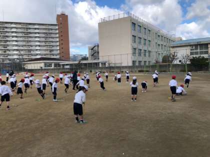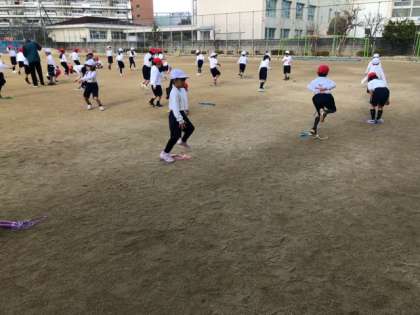 両足でジャンプしたり、片足で飛び越えたりして楽しく遊んでいました。なわとびの学習につなげていきます。