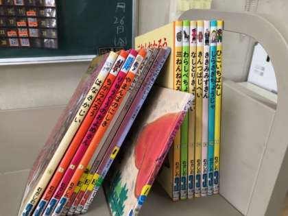 今までに読んだことのない昔話や、知っている好きな昔話から友だちに紹介するお話を決めます。今日は、1人10冊を目標に読んでいました。