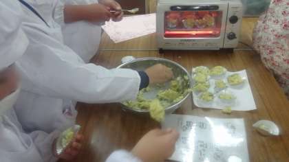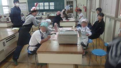 今日、なかよし学級合同で「なかよしクッキング」が行われ、みんなでスイートポテトを作りました。