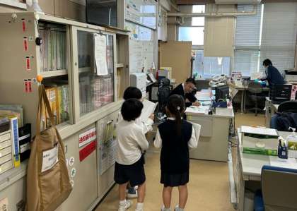 校長先生、教頭先生にインタビューをしていました。お仕事の内容や、大変なことなどをしっかり聞いていました。教室に帰って、メモしたことをまとめていきます。