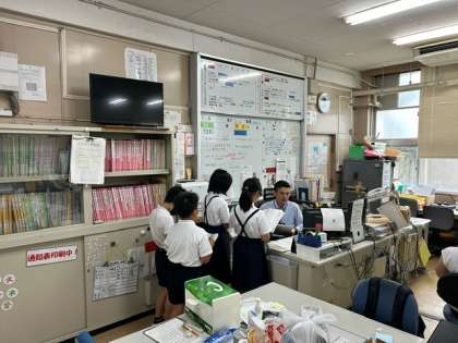 テストに向けての心構えを教頭先生にインタビューしています。色々なアドバイスを受けて、しっかりメモをとっていました。