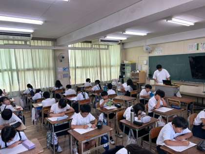 算数科「小数のわり算」理科「メダカのたんじょう」テストをしているクラスもありました。