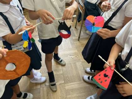 かわいいけん玉をつくりました。それぞれ形が違っておもしろいですね。この後、楽しく遊ぶようです。