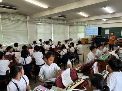 今日は、鍵盤ハーモニカの演奏をしています。タンギングや指づかいを楽しみながら覚えていました。