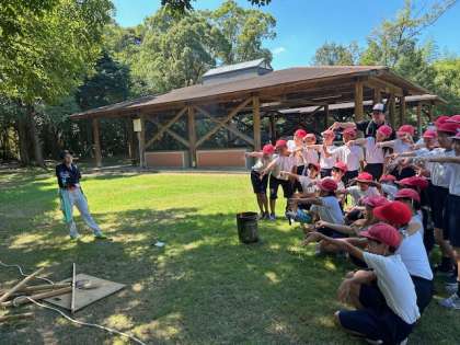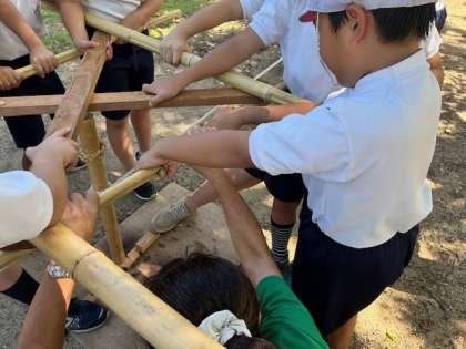 みんなで協力して火を起こしました。火が着いた瞬間、歓声が上がっていました。