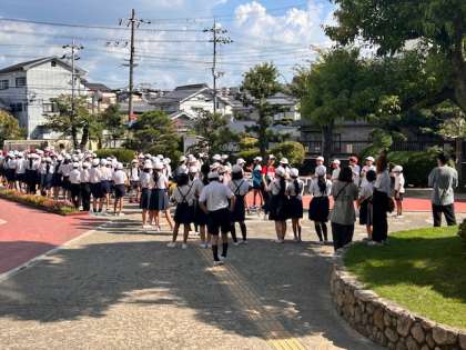 6年生が、玄関でアーチを作って拍手でお出迎えをしてくれました。