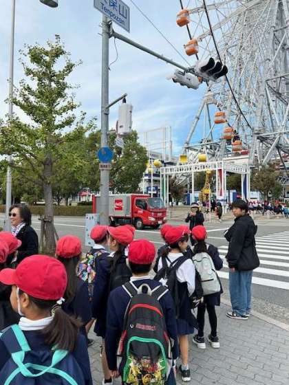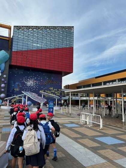 海遊館に到着しました。外国からの旅行客らしき人との交流をしていました。