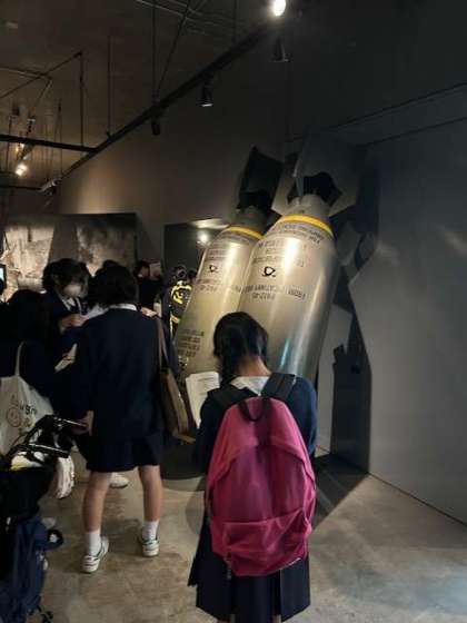 大阪大空襲の資料や1トン爆弾の模型など見ています。