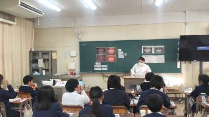 6年生を対象に、「歯と口の健康教室」を実施しました。当日は、学校歯科医の川上先生と大阪市教育委員会より歯科衛生士さんが2名来校し、お話をしていただきました。