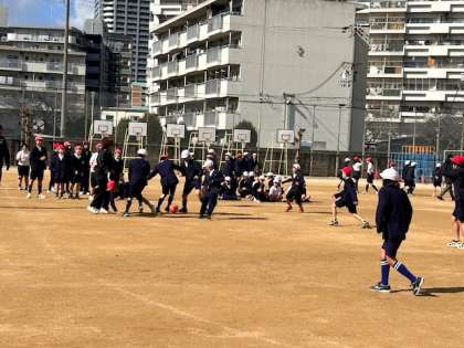 この冬一番の寒さの中、子どもたちと先生たち、セレッソ大阪の方々とサッカーを楽しんでいます!