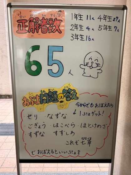 前回の【春の七草】は、50人を目標にしていましたが、なんと65人が合格パチパチ!