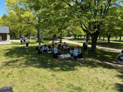 食べ終わって、敷物の上で寝転がったり、芝生の上をゴロゴロ転がったりと、教室ではできない経験ができましたね!